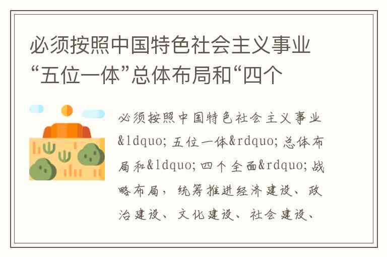 必须按照中国特色社会主义事业“五位一体”总体布局和“四个全面”战略布局,统筹推进经济建设、政治建设、文化建设、社会建设、生态文明建设,协调推进全面建成小康社会、全面深化改革、全面依法治国、全面从严治党。