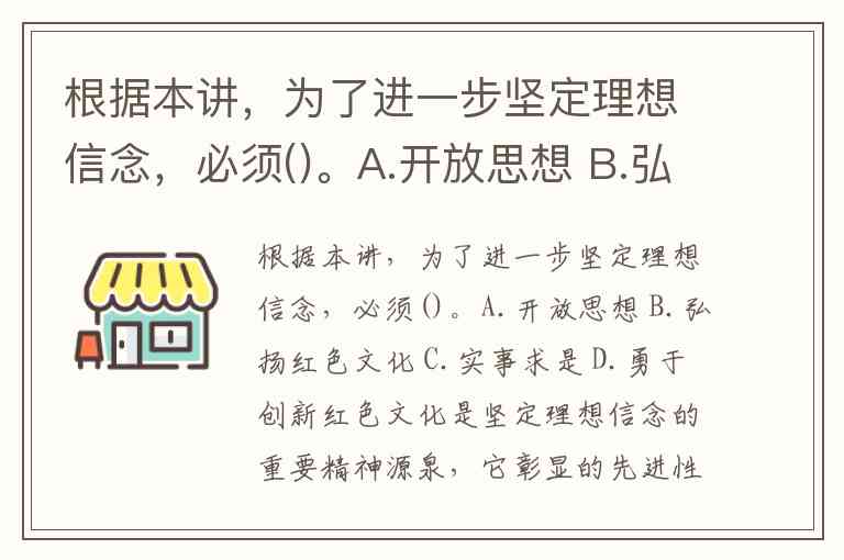 根据本讲,为了进一步坚定理想信念,必须()。A.开放思想 B.弘扬红色文化 C.实事求是 D.勇于创新