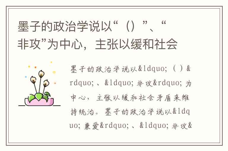 墨子的政治学说以“()”、“非攻”为中心,主张以缓和社会矛盾来维持统治。