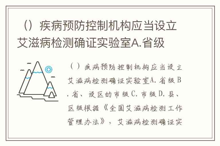()疾病预防控制机构应当设立艾滋病检测确证实验室A.省级 B.省、设区的市级 C.市级 D.县、区级