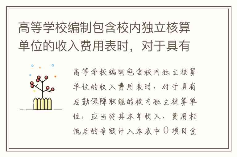 高等学校编制包含校内独立核算单位的收入费用表时,对于具有后勤保障职能的校内独立核算单位,应当将其本年收入、费用相抵后的净额计入本表中()项目金额。A.事业收入 B.财政补助收入 C.其他收入 D.经营收入