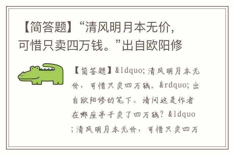【简答题】“清风明月本无价,可惜只卖四万钱。”出自欧阳修的笔下。请问这是作者在哪座亭子卖了四万钱?