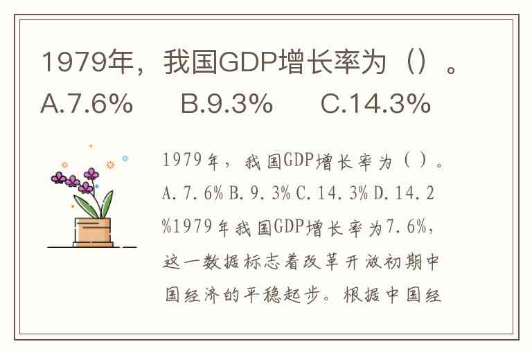 1979年,我国GDP增长率为()。A.7.6% B.9.3% C.14.3% D.14.2%