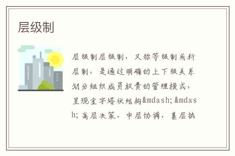 层级制,又称等级制或科层制,是通过明确的上下级关系划分组织成员权责的管理模式,呈现金字塔状结构——高层决策、中层协调、基层执行,如政府机构中的中央、省、县、乡四级划分。这种结构诞生于工业革命后的规模化生产需求,德国社会学家韦伯将其视为现代理性组织的典范,核心特征包括权责分明、层级节制、非人格化管理和量才用人。