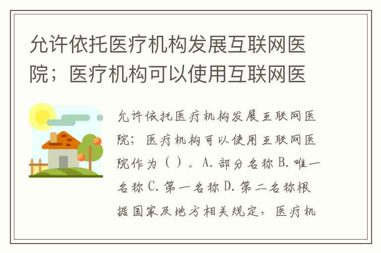 允许依托医疗机构发展互联网医院;医疗机构可以使用互联网医院作为()。A.部分名称 B.唯一名称 C.第一名称 D.第二名称