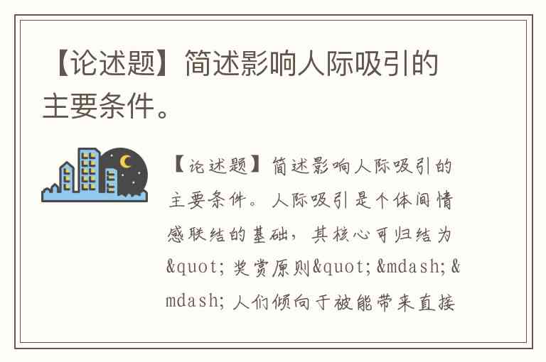人际吸引是个体间情感联结的基础,其核心可归结为"奖赏原则"——人们倾向于被能带来直接或间接愉悦的对象吸引。这种吸引力的形成并非单一因素作用,而是多种心理机制共同作用的结果,主要包括空间接近性、态度相似性、需求互补性、外表魅力、个性品质五大核心条件。
