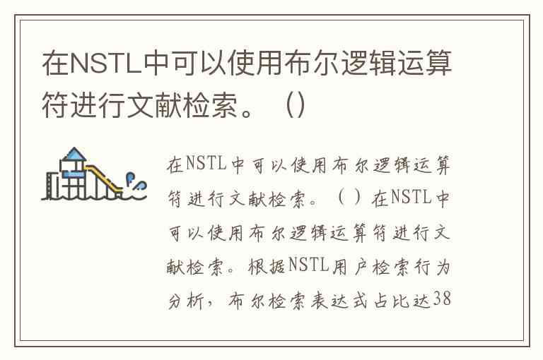 在NSTL中可以使用布尔逻辑运算符进行文献检索。根据NSTL用户检索行为分析,布尔检索表达式占比达38.44%,其中"AND"运算符的使用比例高达91%,是用户最常用的逻辑组配方式。这表明布尔逻辑检索是NSTL用户进行精准文献筛选的核心手段。