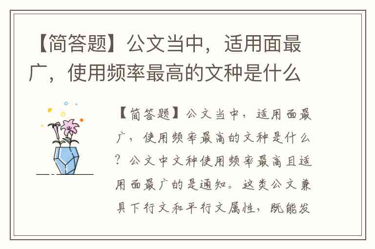 【简答题】公文当中,适用面最广,使用频率最高的文种是什么?
