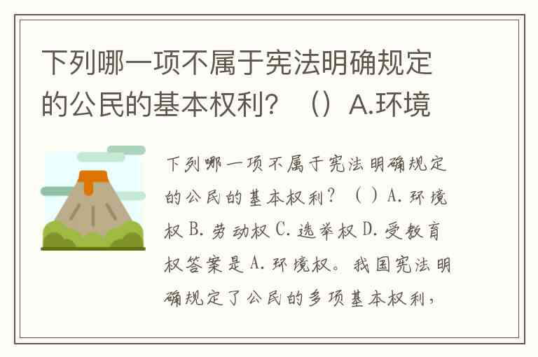 下列哪一项不属于宪法明确规定的公民的基本权利?()A.环境权 B.劳动权 C.选举权 D.受教育权