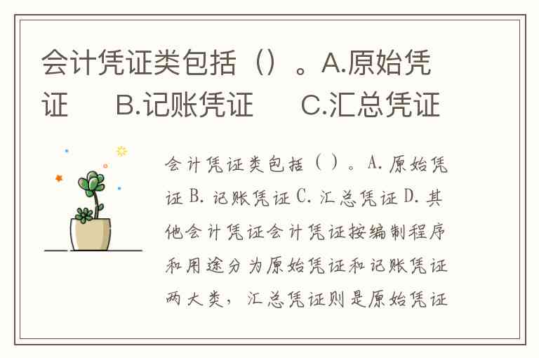 会计凭证类包括()。A.原始凭证 B.记账凭证 C.汇总凭证 D.其他会计凭证