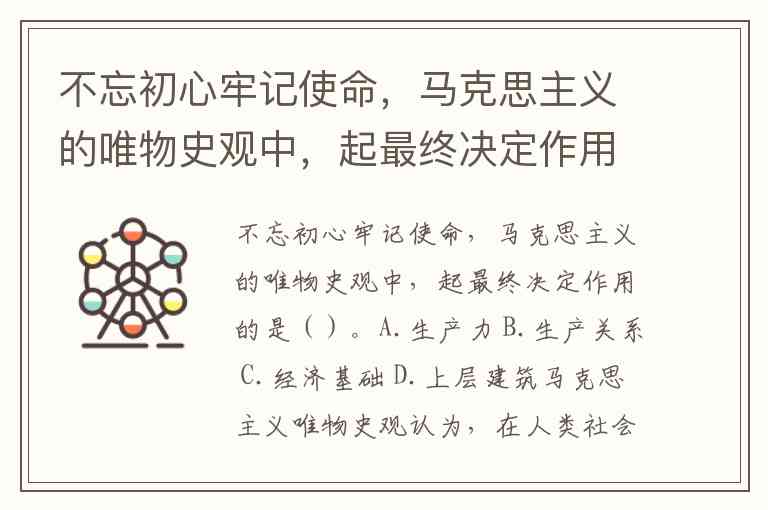 不忘初心牢记使命,马克思主义的唯物史观中,起最终决定作用的是()。A.生产力 B.生产关系 C.经济基础 D.上层建筑