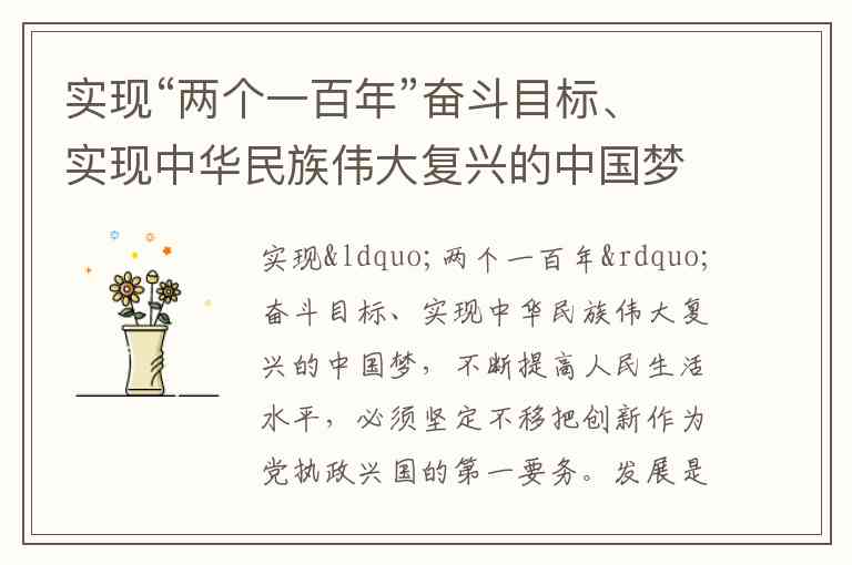 实现“两个一百年”奋斗目标、实现中华民族伟大复兴的中国梦,不断提高人民生活水平,必须坚定不移把创新作为党执政兴国的第一要务。
