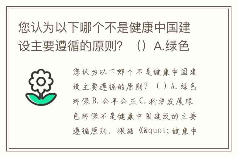 您认为以下哪个不是健康中国建设主要遵循的原则?()A.绿色环保 B.公平公正 C.科学发展