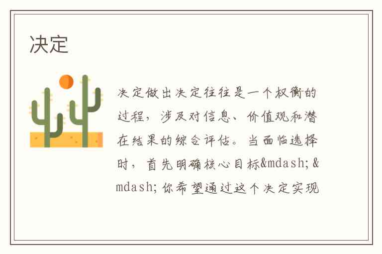 做出决定往往是一个权衡的过程,涉及对信息、价值观和潜在结果的综合评估。当面临选择时,首先明确核心目标——你希望通过这个决定实现什么?是短期利益还是长期价值?是个人偏好满足还是多方共赢?将模糊的愿望转化为具体标准,比如“选择工作时优先考虑成长空间而非起薪”,能大幅简化后续判断。