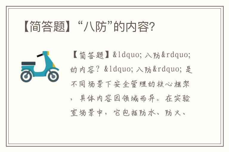 其他领域的“八防”各有侧重:校园场景强调防火、防盗、防踩踏等,档案管理关注防高温、防潮、防虫等,而电子档案则聚焦防篡改、防病毒、防信息泄露等技术防护。无论哪种场景,“八防”均体现“预防为主、系统管控”的安全理念,需结合实际场景动态调整措施。你认为在实验室操作中,哪类风险最容易因疏忽引发事故?