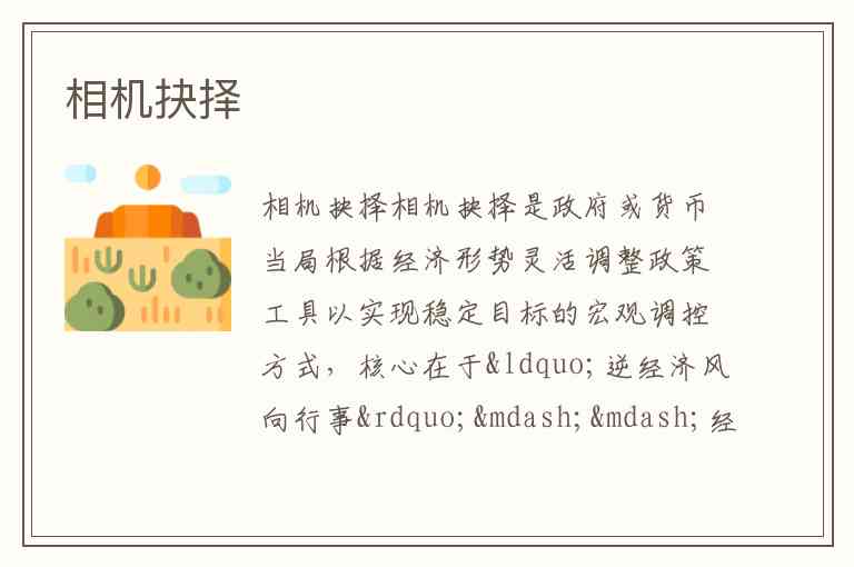 相机抉择是政府或货币当局根据经济形势灵活调整政策工具以实现稳定目标的宏观调控方式,核心在于“逆经济风向行事”——经济过热时收紧政策,萧条时放松干预。这一思想源自凯恩斯主义对市场失灵的判断,认为仅凭市场机制无法实现充分就业,需通过财政与货币政策主动调节总需求。