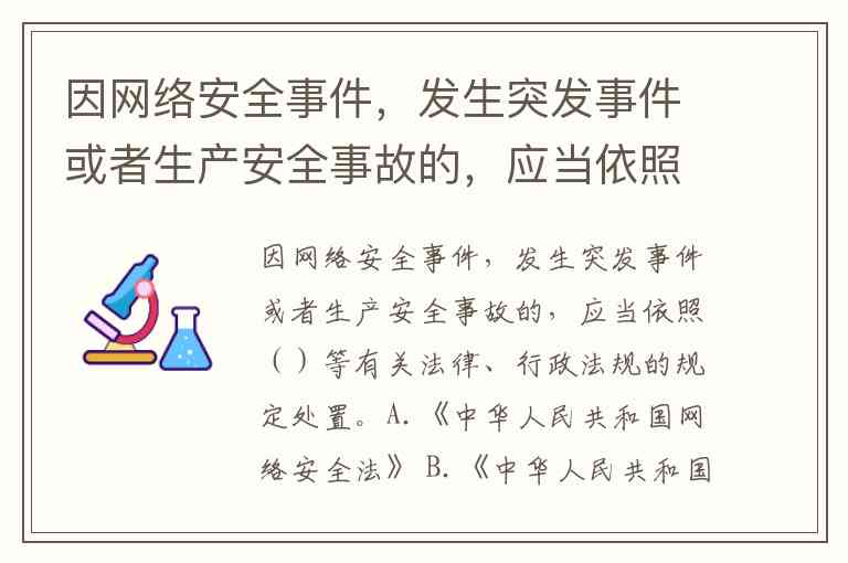 因网络安全事件,发生突发事件或者生产安全事故的,应当依照()等有关法律、行政法规的规定处置。A.《中华人民共和国网络安全法》 B.《中华人民共和国突发事件应对法》 C.《中华人民共和国安全生产法》 D.《中华人民共和国应急法》