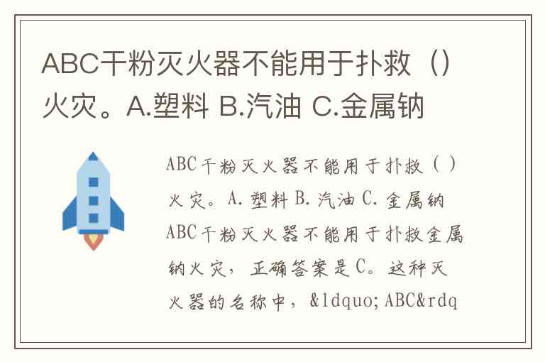 ABC干粉灭火器不能用于扑救()火灾。A.塑料 B.汽油 C.金属钠