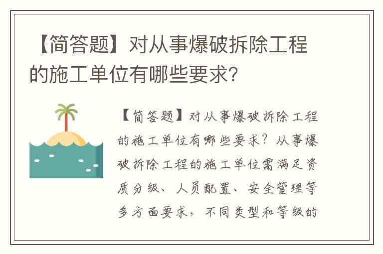 【简答题】对从事爆破拆除工程的施工单位有哪些要求?