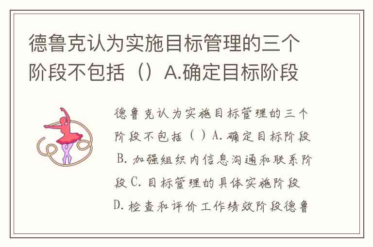 德鲁克认为实施目标管理的三个阶段不包括()A.确定目标阶段 B.加强组织内信息沟通和联系阶段 C.目标管理的具体实施阶段 D.检查和评价工作绩效阶段