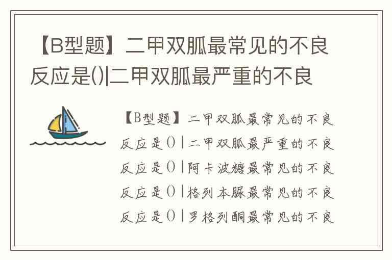 【B型题】二甲双胍最常见的不良反应是()|二甲双胍最严重的不良反应是()|阿卡波糖最常见的不良反应是()|格列本脲最常见的不良反应是()|罗格列酮最常见的不良反应是()A.胃肠道反应 B.乳酸酸中毒 C.低血糖反应 D.白细胞减少 E.水肿