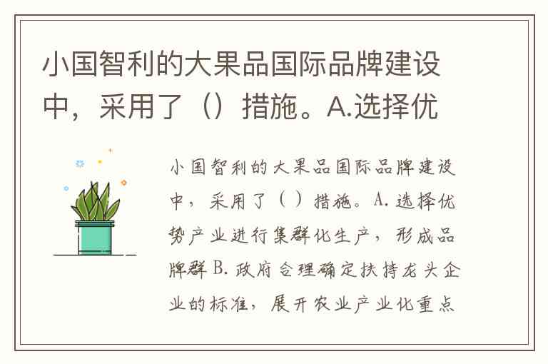 智利作为小国却成为果品出口强国,其国际品牌建设的核心在于通过产业集群、市场导向、质量管控和全球布局的系统性策略,将地理优势转化为市场竞争力。具体措施包括: