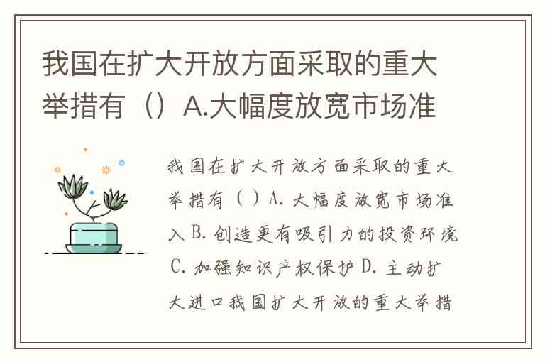 我国在扩大开放方面采取的重大举措有()A.大幅度放宽市场准入 B.创造更有吸引力的投资环境 C.加强知识产权保护 D.主动扩大进口