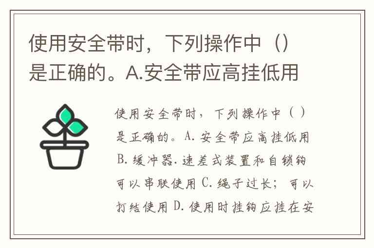 使用安全带时,下列操作中()是正确的。A.安全带应高挂低用 B.缓冲器.速差式装置和自锁钩可以串联使用 C.绳子过长;可以打结使用 D.使用时挂钩应挂在安全绳上使用