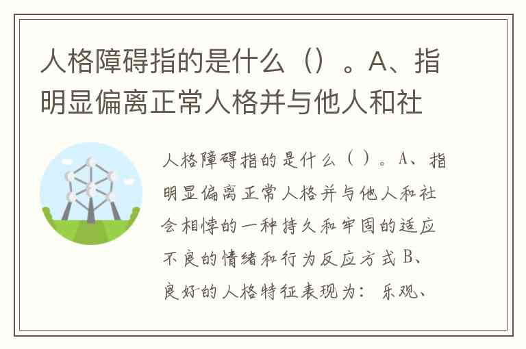 人格障碍指的是什么()。A、指明显偏离正常人格并与他人和社会相悖的一种持久和牢固的适应不良的情绪和行为反应方式 B、良好的人格特征表现为:乐观、自尊、自信、开朗、热情、宽容、认真、独立、主动、积极、充满希望 C、性格是人对现实的稳定的态度和习惯了的行为方式