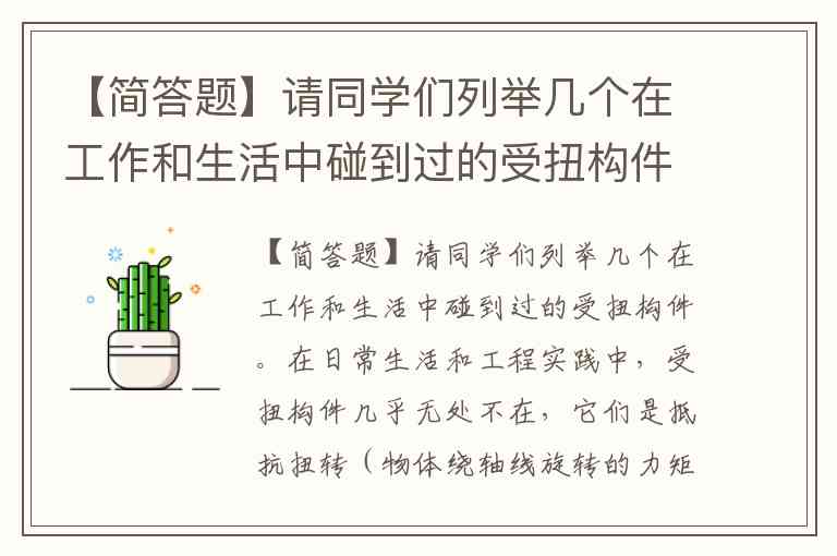 【简答题】请同学们列举几个在工作和生活中碰到过的受扭构件。