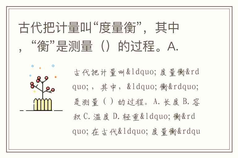 古代把计量叫“度量衡”,其中,“衡”是测量()的过程。A.长度 B.容积 C.温度 D.轻重