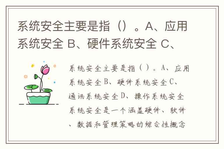 系统安全主要是指()。A、应用系统安全 B、硬件系统安全 C、通讯系统安全 D、操作系统安全