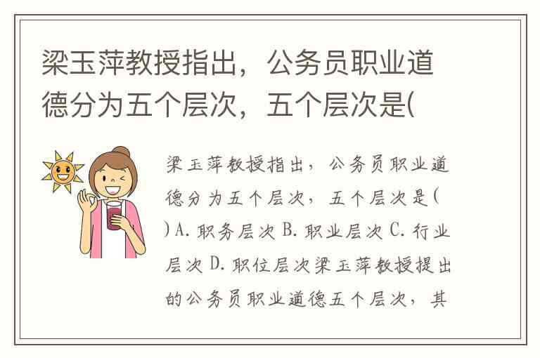梁玉萍教授指出,公务员职业道德分为五个层次,五个层次是( )A.职务层次 B.职业层次 C.行业层次 D.职位层次