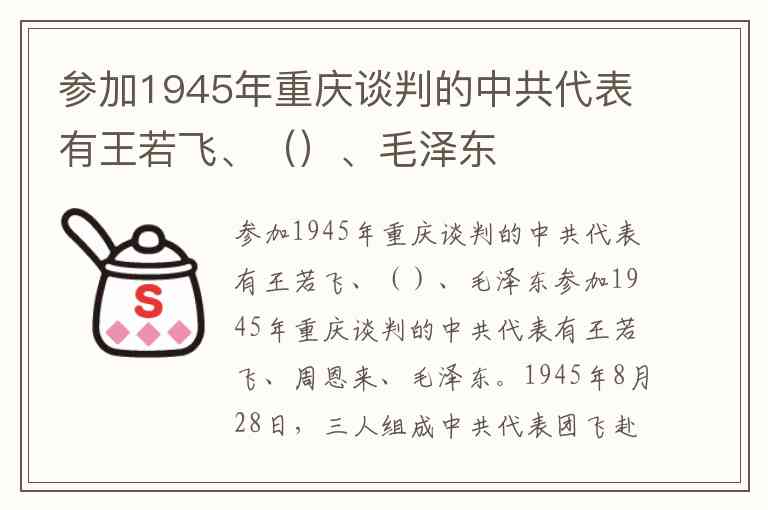 参加1945年重庆谈判的中共代表有王若飞、()、毛泽东