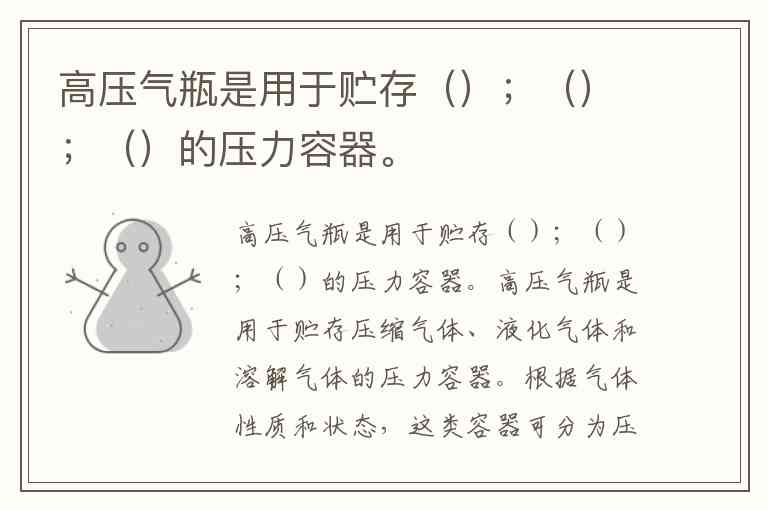 高压气瓶是用于贮存压缩气体、液化气体和溶解气体的压力容器。根据气体性质和状态,这类容器可分为压缩气体瓶(如氧气、氮气)、液化气瓶(如液化气)和溶解气体瓶(如乙炔)等类型,广泛应用于实验室、工业生产等场景。