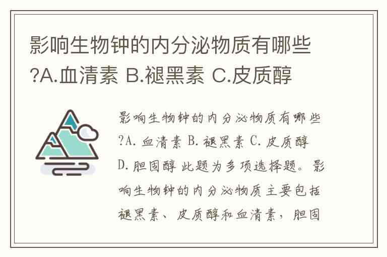 影响生物钟的内分泌物质有哪些?A.血清素 B.褪黑素 C.皮质醇 D.胆固醇 此题为多项选择题。
