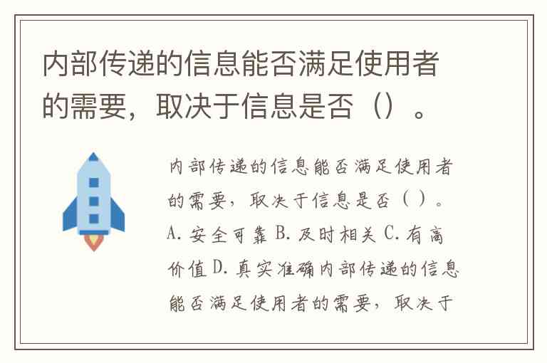 内部传递的信息能否满足使用者的需要,取决于信息是否()。A.安全可靠 B.及时相关 C.有高价值 D.真实准确