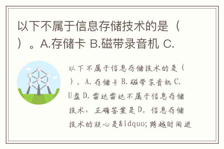 以下不属于信息存储技术的是()。A.存储卡 B.磁带录音机 C.U盘 D.雷达