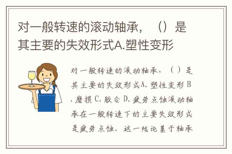 对一般转速的滚动轴承,()是其主要的失效形式A.塑性变形 B.磨损 C.胶合 D.疲劳点蚀