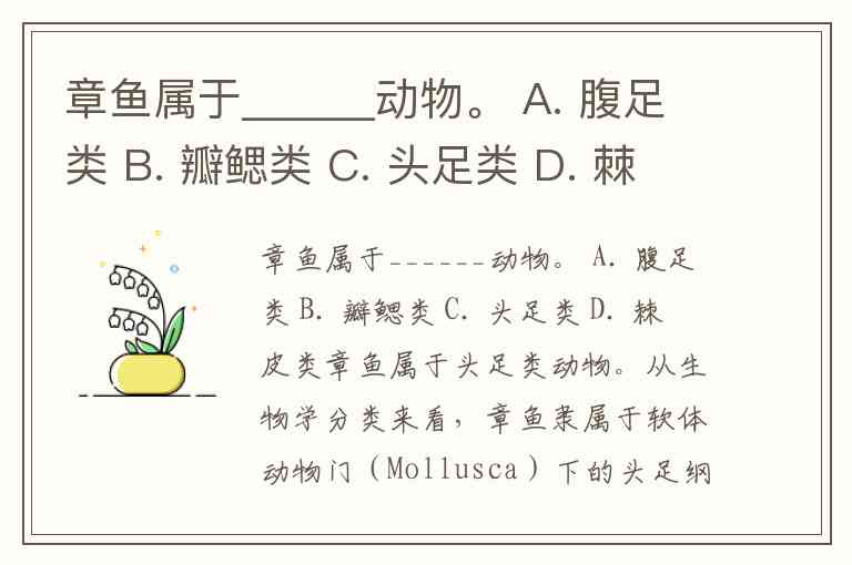 章鱼属于______动物。 A. 腹足类 B. 瓣鳃类 C. 头足类 D. 棘皮类