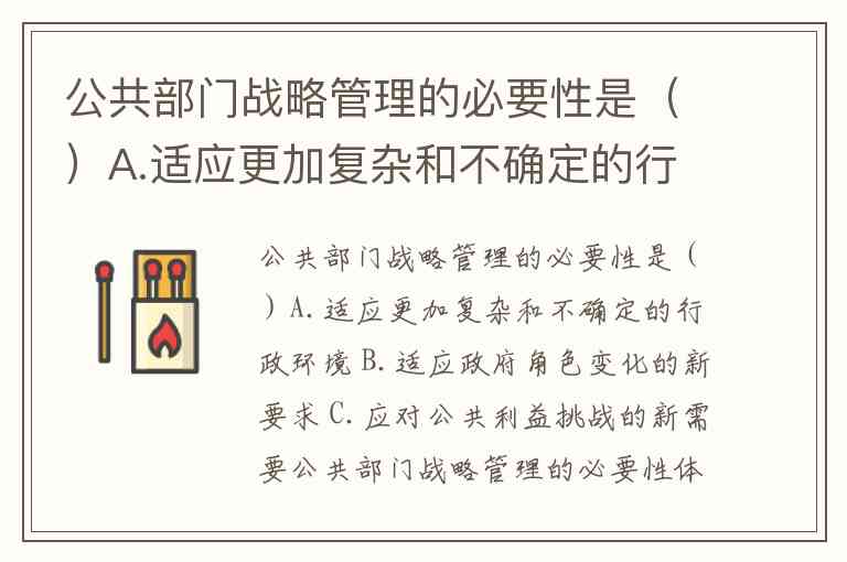 公共部门战略管理的必要性是()A.适应更加复杂和不确定的行政环境 B.适应政府角色变化的新要求 C.应对公共利益挑战的新需要