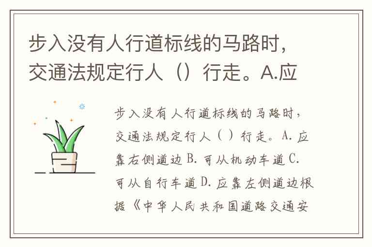 步入没有人行道标线的马路时,交通法规定行人()行走。A.应靠右侧道边 B.可从机动车道 C.可从自行车道 D.应靠左侧道边