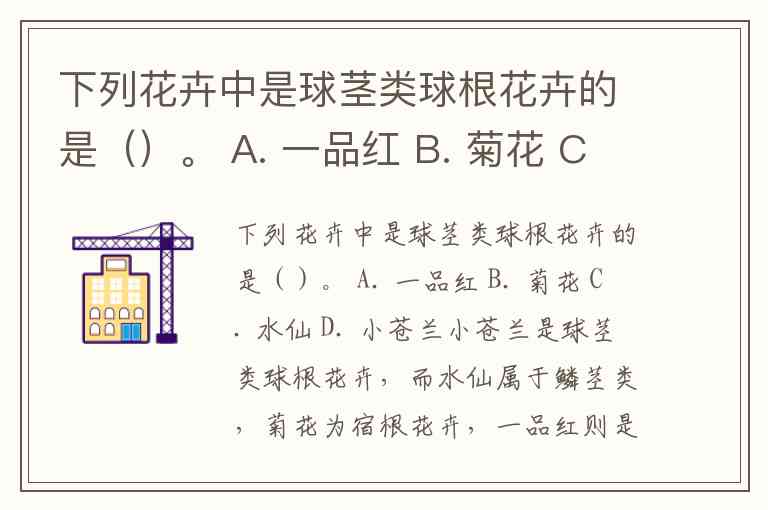 下列花卉中是球茎类球根花卉的是()。 A. 一品红 B. 菊花 C. 水仙 D. 小苍兰