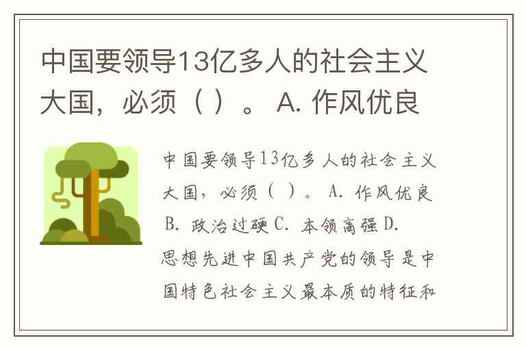 中国要领导13亿多人的社会主义大国,必须( )。 A. 作风优良 B. 政治过硬 C. 本领高强 D. 思想先进