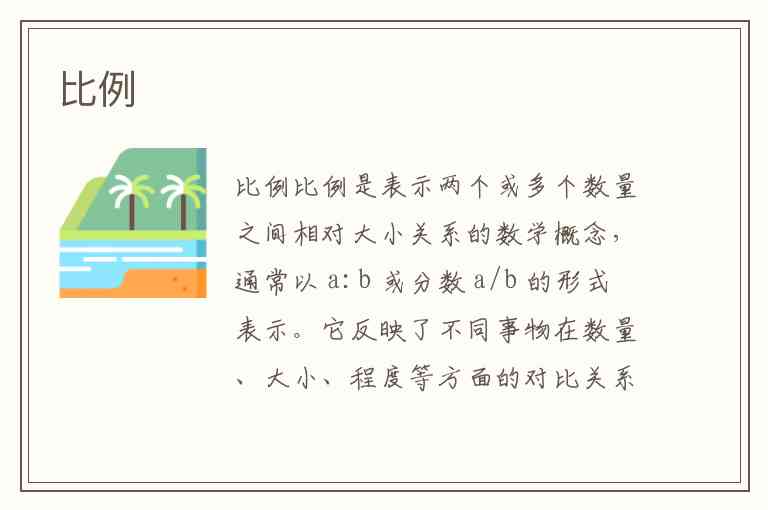 比例是表示两个或多个数量之间相对大小关系的数学概念,通常以 a:b 或分数 a/b 的形式表示。它反映了不同事物在数量、大小、程度等方面的对比关系,在日常生活和数学中应用广泛,从食谱配料到地图比例尺,从金融分析到科学实验都离不开比例计算。
