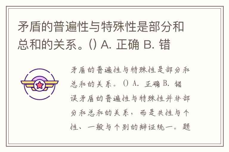 矛盾的普遍性与特殊性是部分和总和的关系。() A. 正确 B. 错误