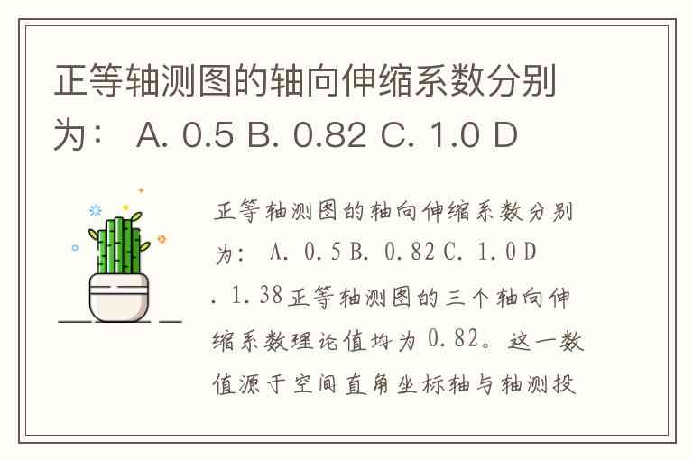 正等轴测图的轴向伸缩系数分别为: A. 0.5 B. 0.82 C. 1.0 D. 1.38