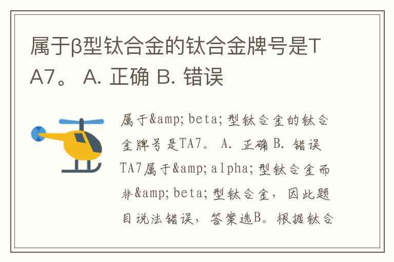 TA7属于α型钛合金而非β型钛合金,因此题目说法错误,答案选B。