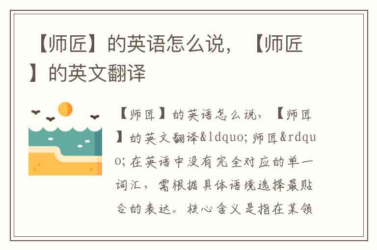 【师匠】的英语怎么说,【师匠】的英文翻译
