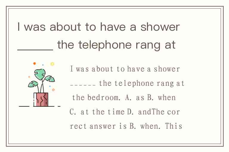 I was about to have a shower______ the telephone rang at the bedroom. A. as B. when C. at the time D. and